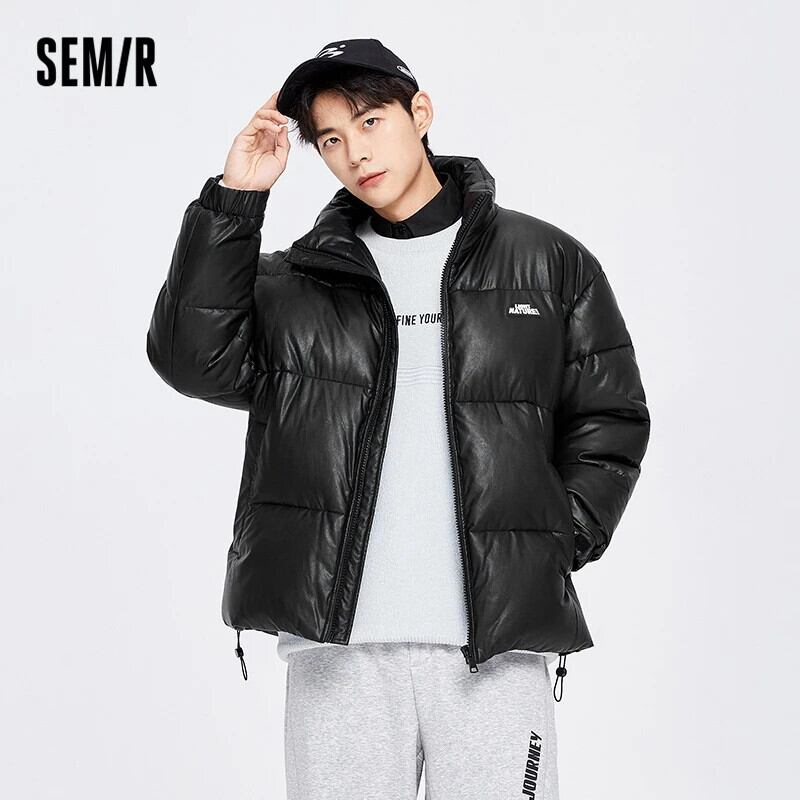 送料無料 Semir ジャケット男性ルーススタンドカラー巾着レター PU 模造革 2023 冬ショルダー Comtable 厚いジャケット ウィンター 冬物 レザー AE1212777757963282056