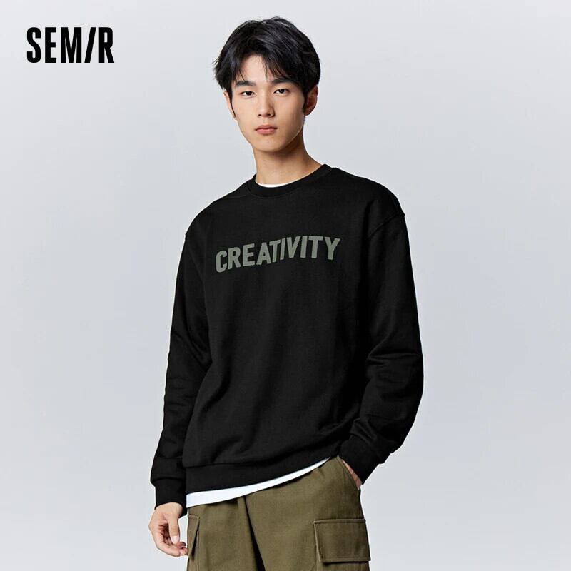 送料無料 Semir トレーナーメンズ冬シンプルなコントラストカラーテクスチャレタープリントベースレイヤーフィットラウンドネックスウェットシャツ ウィンター 冬物 Oネック AE1212777710320202633