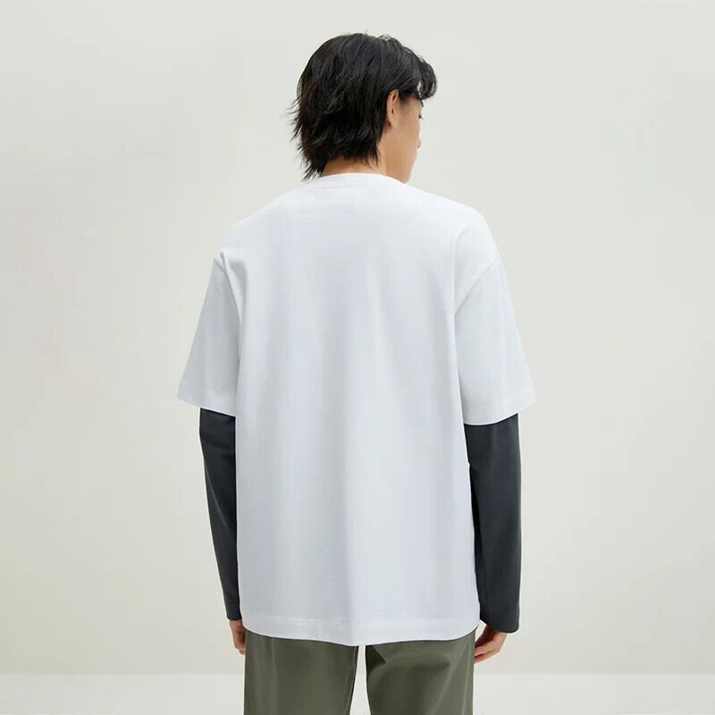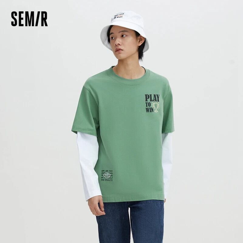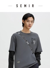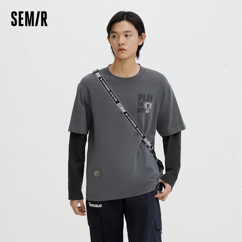 送料無料 Semir 長袖 Tシャツ男性 2023 春の男ニットクールストリートコットンフェイクツーピーストップ Tシャツ男 ロング スプリング 春物 AE1212777753424504392