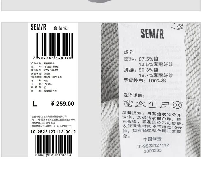 送料無料 Semir 男性パンツ男性ズボン男性パンツスリムフィット作業弾性ウエスト軽くて薄いクールなズボン エラスティック 伸縮 AE1212777719252553987