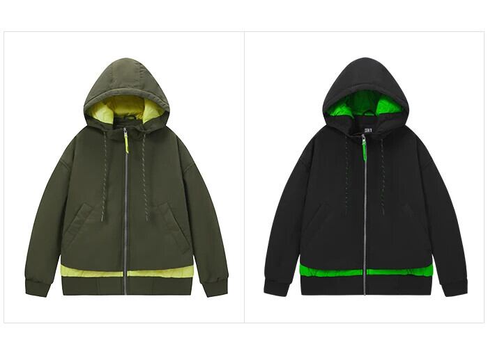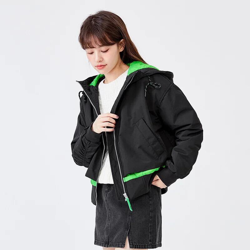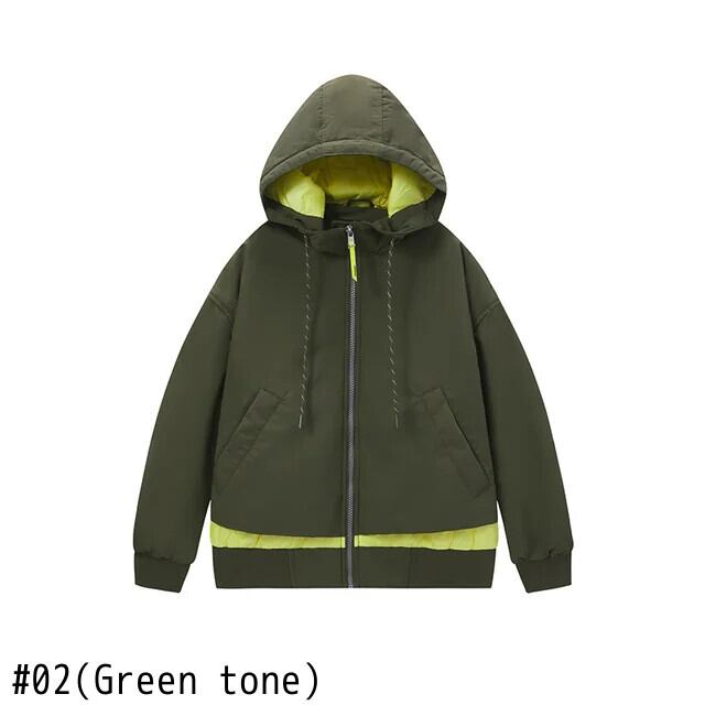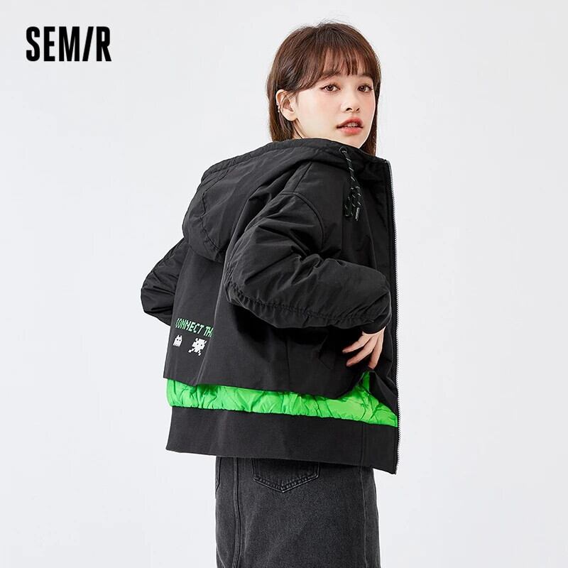 送料無料 Semir 女性ショートジャケット綿オーバーレイ偽 2 クール春 2023 フード付きカラーコントラストジャケット コットン スプリング 春物 AE1212777763699174296