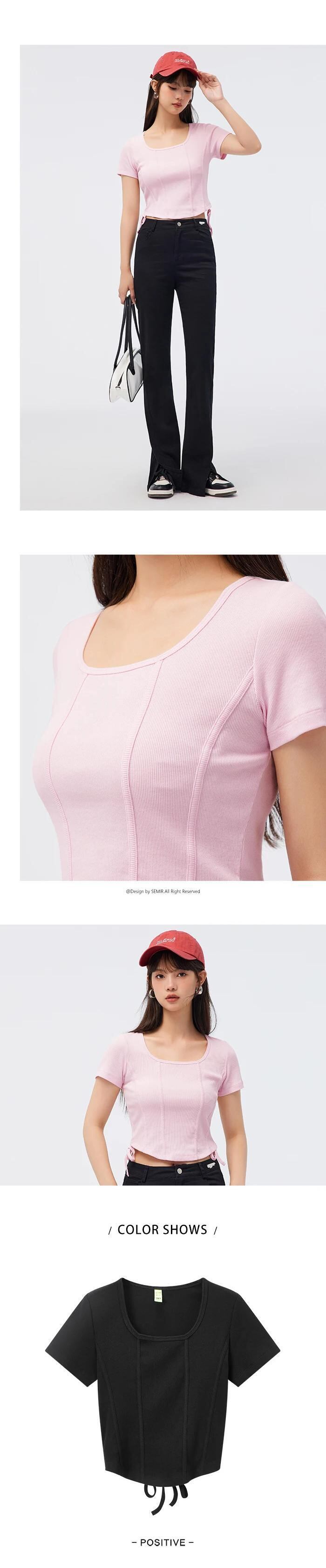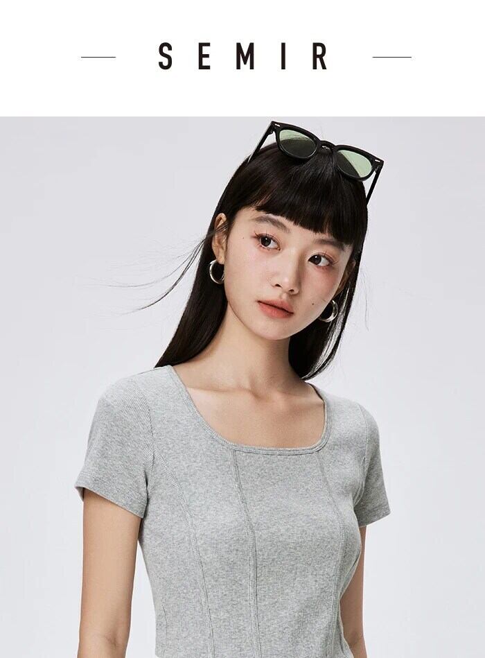 送料無料 Semir 半袖 Tシャツ女性ショートタイトニットセクシーな 2023 夏固体フィッシュボーントップス女性 ハーフスリーブ サマー 夏物 ソリッドカラー AE1212777775663601276
