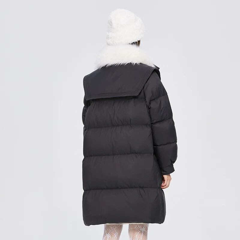 送料無料 Semir ダウンジャケット女性ロング甘い優しい毛皮の襟 3 プルーフ 2023 冬ルーズホーンプレートボタンジャケット 大人ガーリー スウィート キュート カジュアル ウィンター 冬物 AE1212777737936711373