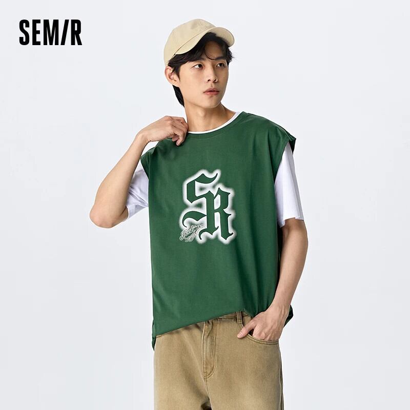 送料無料 Semir タンクトップ男性 2023 夏ルーズフィットトレンドストリートスタイルシンプルなレタープリントノースリーブトップ サマー 夏物 AE1212777752590002253