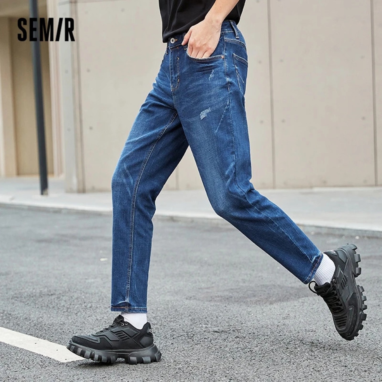 送料無料 Semir ジーンズ男性 2022 秋のベーシックソリッドカラー小足ライクラ弾性ズボンパンツ エラスティック 伸縮 オータム 秋物 AE1212777799927237325