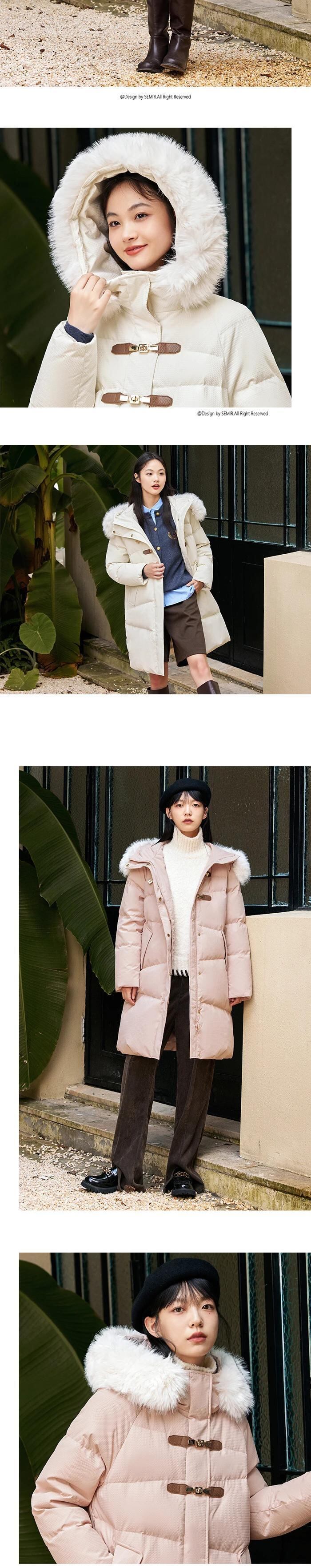 送料無料 Semir ダウンジャケット女性ロング大型毛皮の襟フード付きルーズ暖かい 2023 冬の文学テクスチャ厚いジャケット ウィンター 冬物 AE1212777765821599379