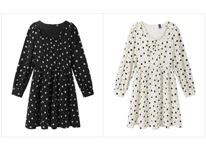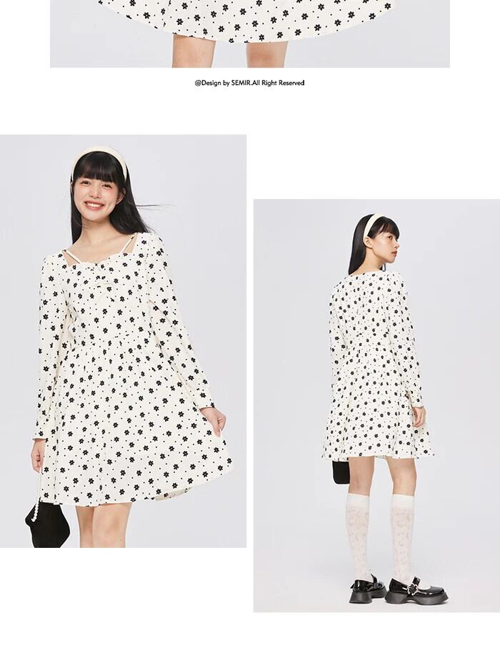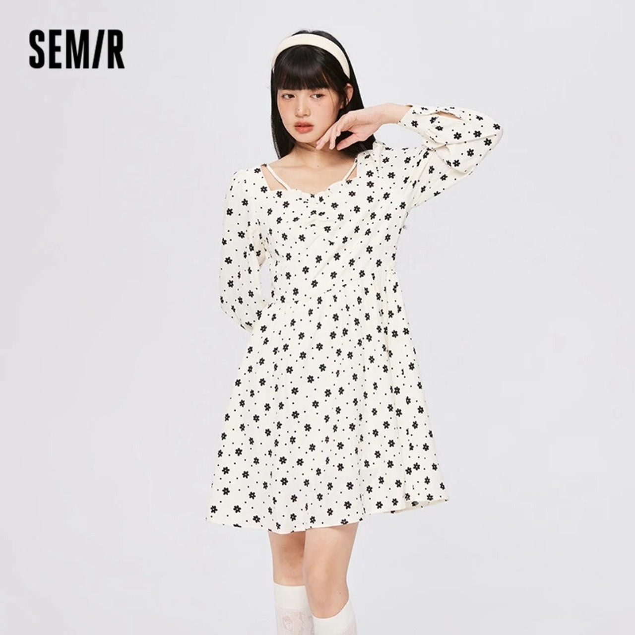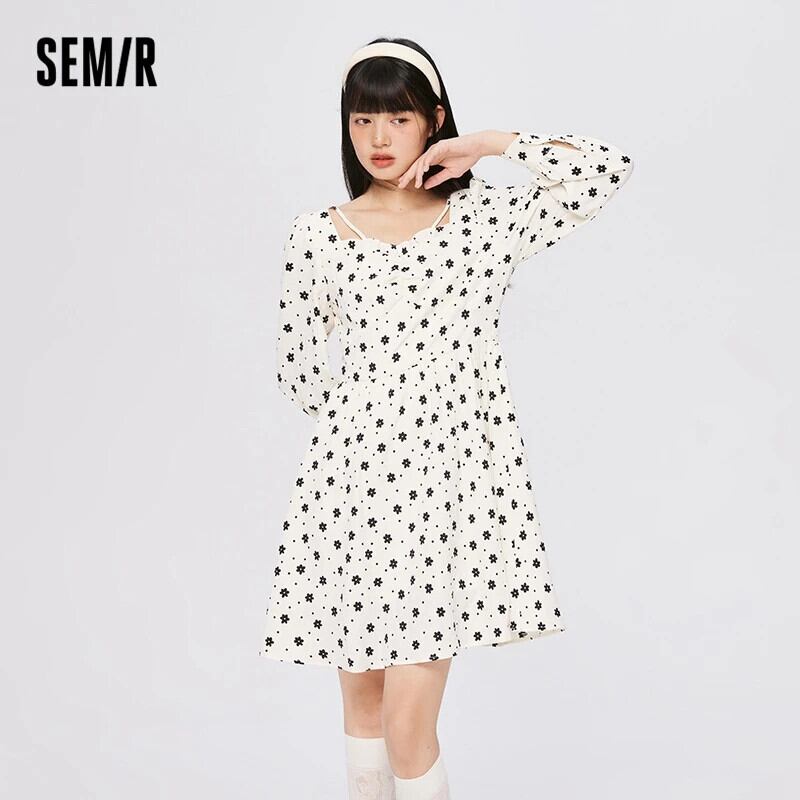 送料無料 セミールドレス女性テクスチャ菌エッジ花柄ドレス気質 2022 秋ウエストスクエアカラードレス オータム 秋物 スクウェア AE1212777738057029634