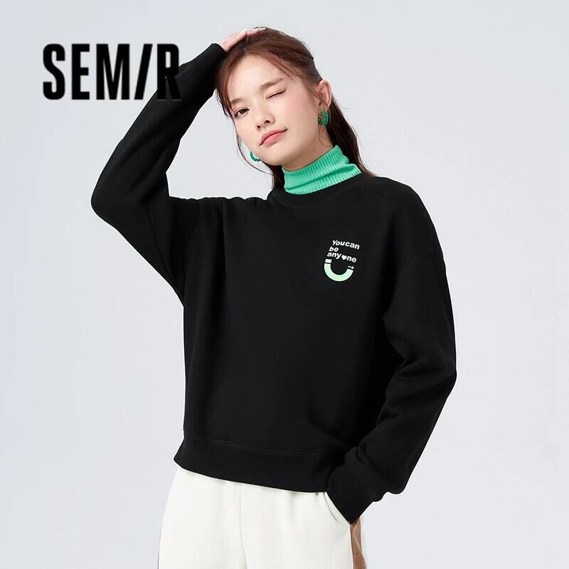 送料無料 Semir トレーナー女性ルースポーラーフリースラウンドネックオフショルダー 2023 冬多用途プリントトップ ウィンター 冬物 Oネック AE1212777711326300074