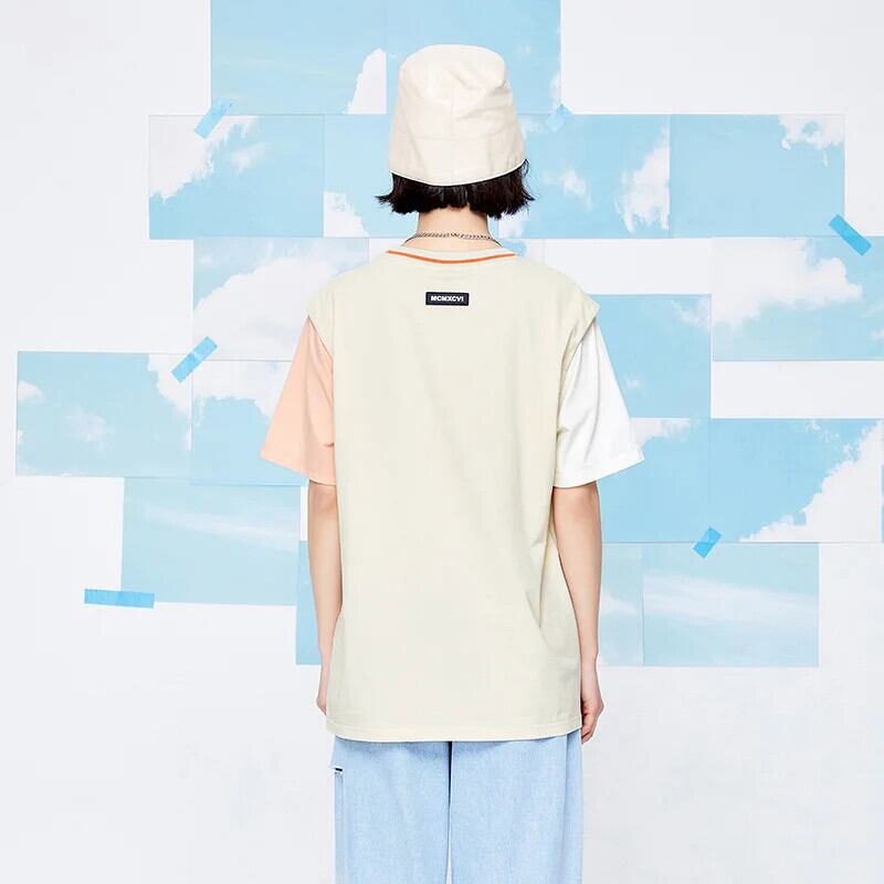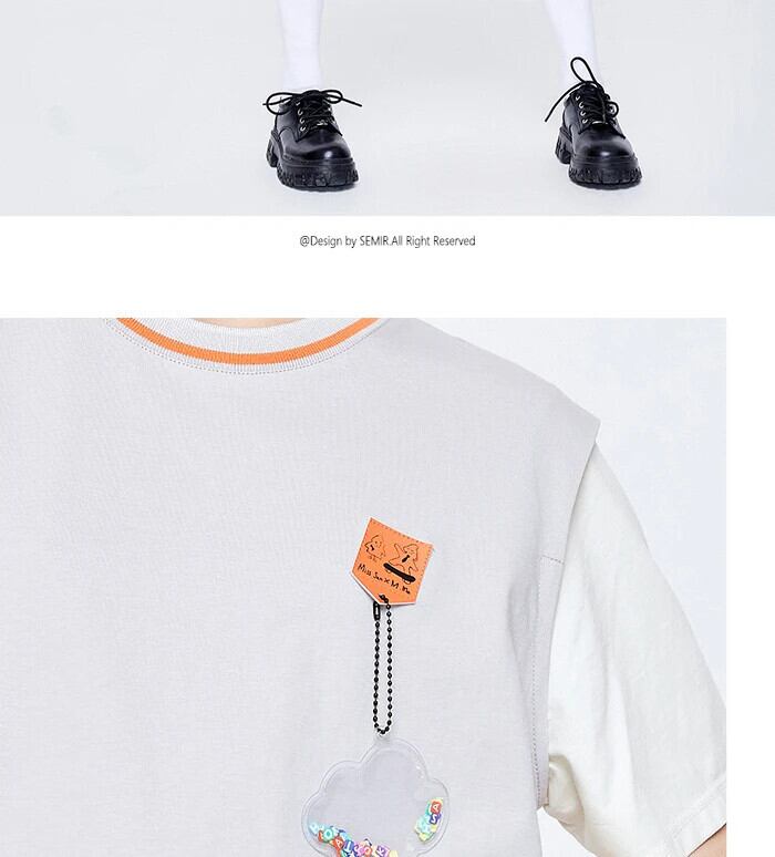 送料無料 Semir 半袖 Tシャツ女性中ロングカラーコントラスト偽二枚 2023 夏ルーズプルオーバートップス ショート ハーフスリーブ サマー 夏物 AE1212777716914166712