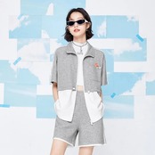 送料無料 Semir スーツ女性スタンドアップカラーコートコントラストステッチパンツルーズ夏 2 点セットレトロスポーツスタイル サマー 夏物 AE1212777716774594280