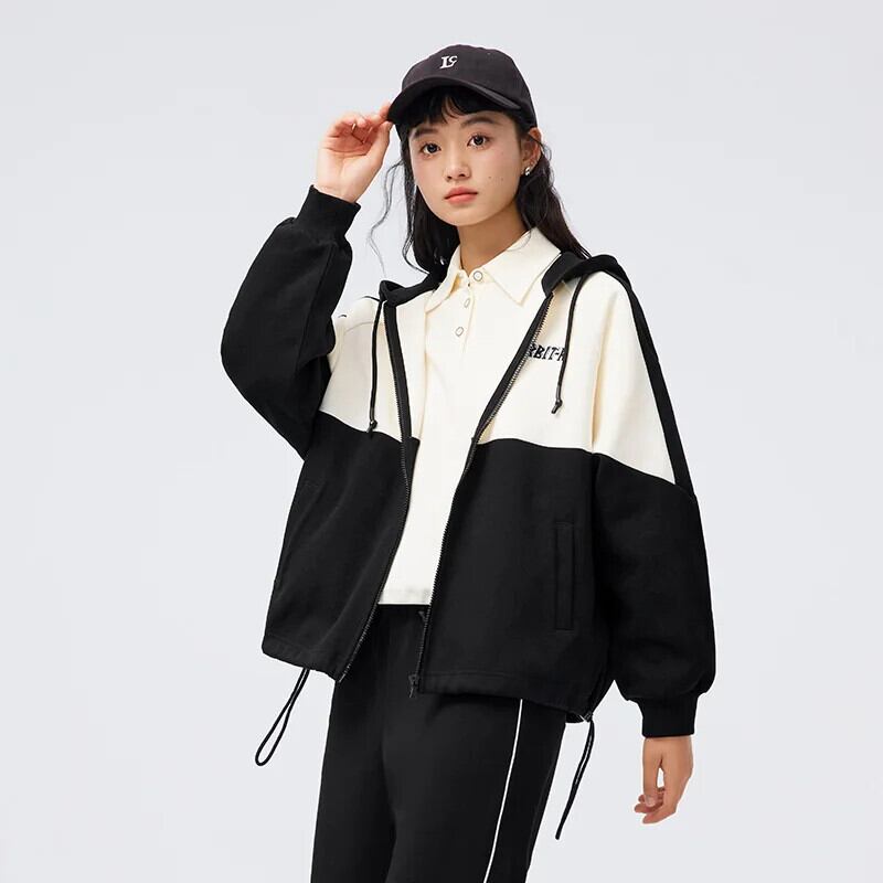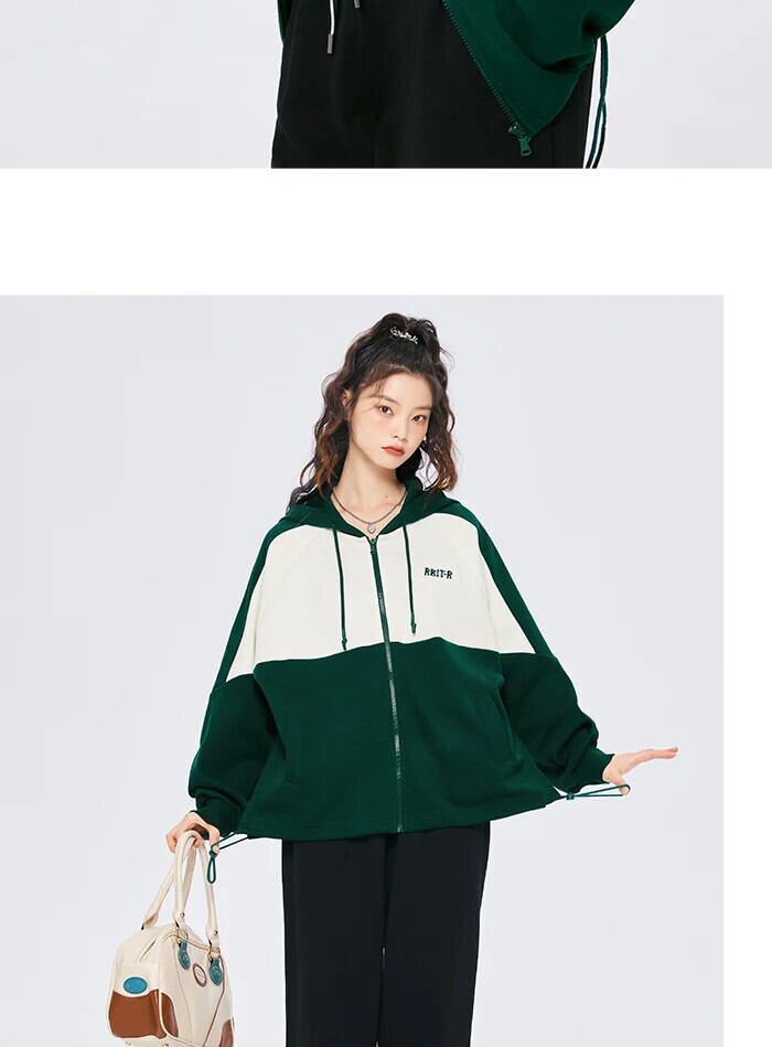 送料無料 Semir 女性コートレター刺繍ルーズ秋カラーマッチングラグラン袖フード付きニットジャケットレトロコート女性 オータム 秋物 AE1212777739863388547