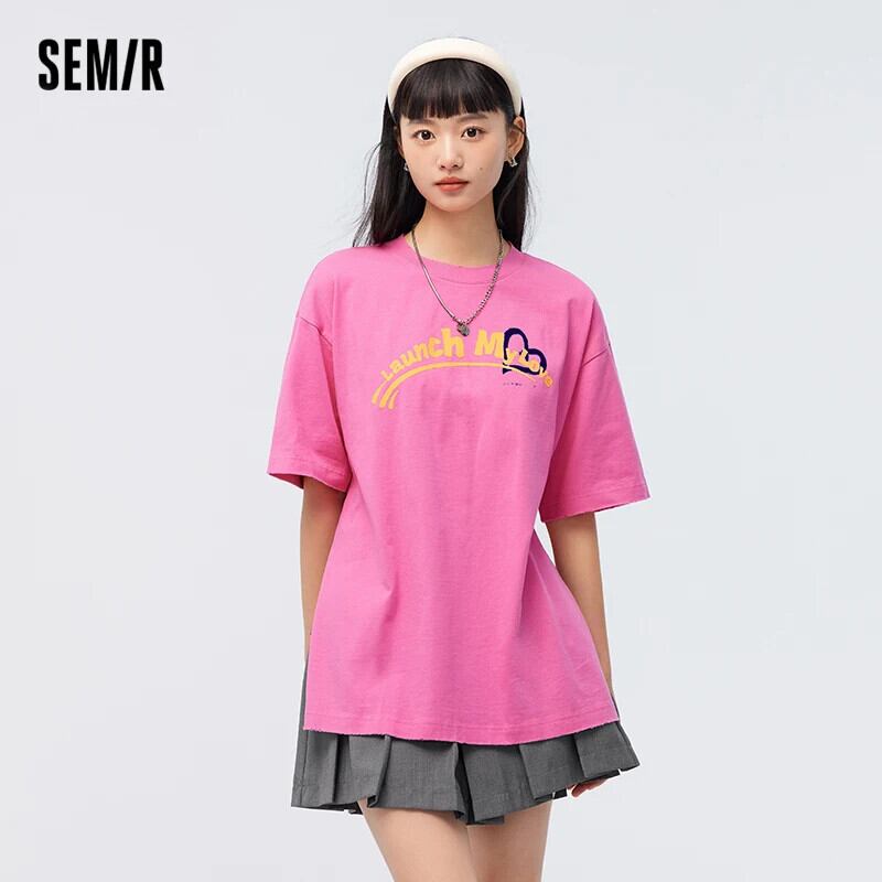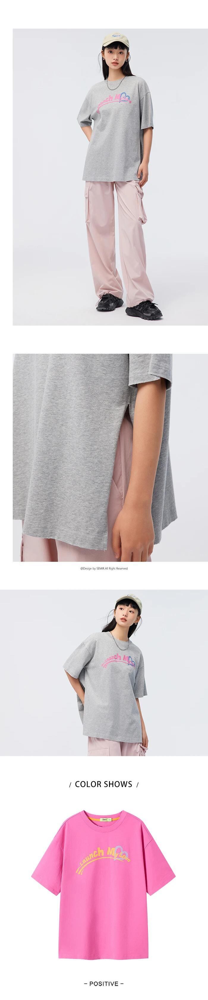 送料無料 Semir 半袖 Tシャツ女性ミディアム丈レター 2023 コットンオーバーサイズスプリットカット夏レトロ ショート ハーフスリーブ サマー 夏物 AE1212777730830342961
