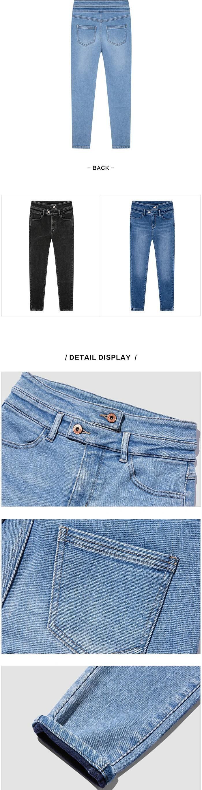 送料無料 Semir 女性肥厚ベルベットジーンズ 2023 冬肥厚黒ウエスト痩身小柄パンツ ブラック ウィンター 冬物 AE1212777730645144304
