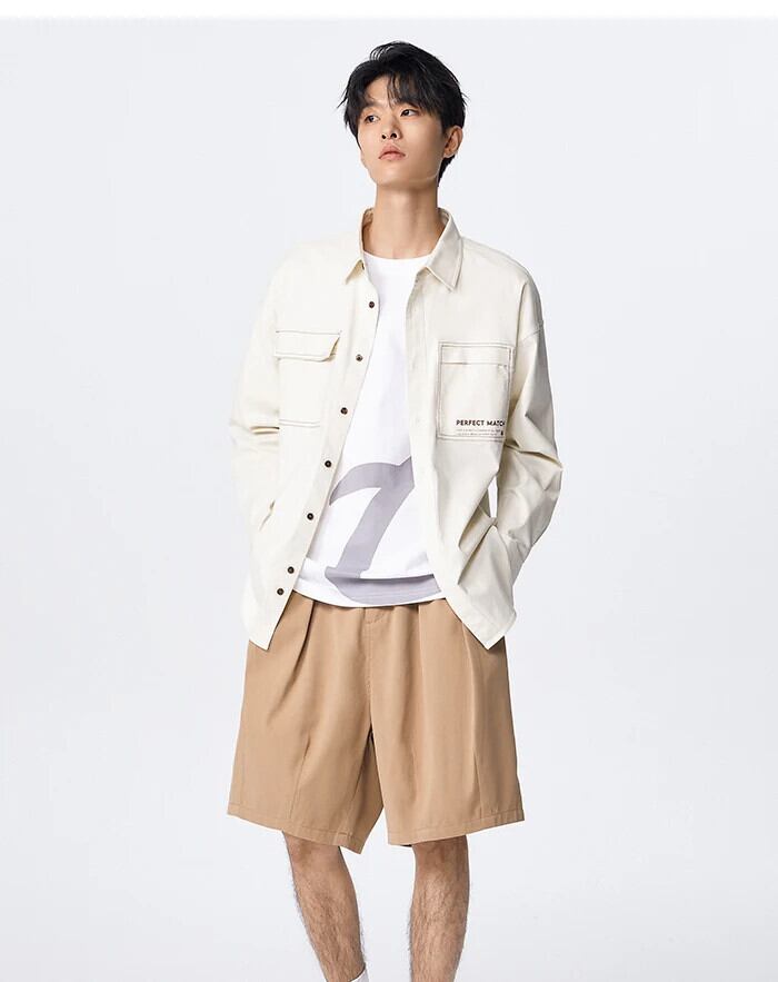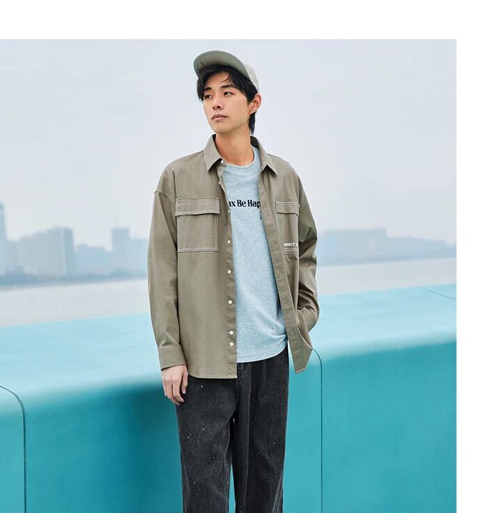 送料無料 Semir 長袖シャツメンズ 2023 春ルーズワークウェアラペルシャツ ロング スプリング 春物 AE1212777720082968061