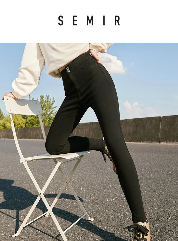 送料無料 Semir パンツ レディース ブラック スリムフィット 2023 冬脚長カプリパンツ ウィンター 冬物 AE1212777750513268861