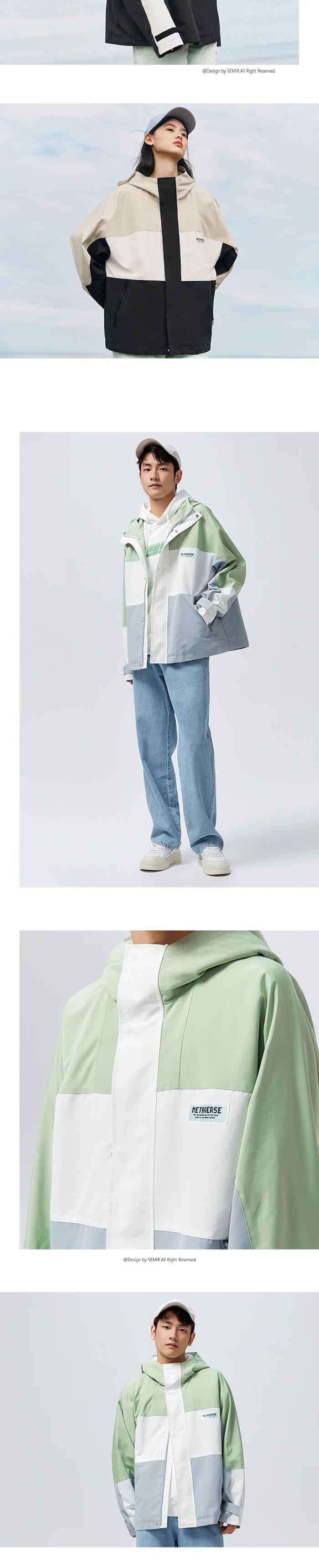 送料無料 Semir 男性コート 2023 春防水防風屋外カラーコントラストスプライシングメンズコートカップルジャケット スプリング 春物 AE1212777718579775955