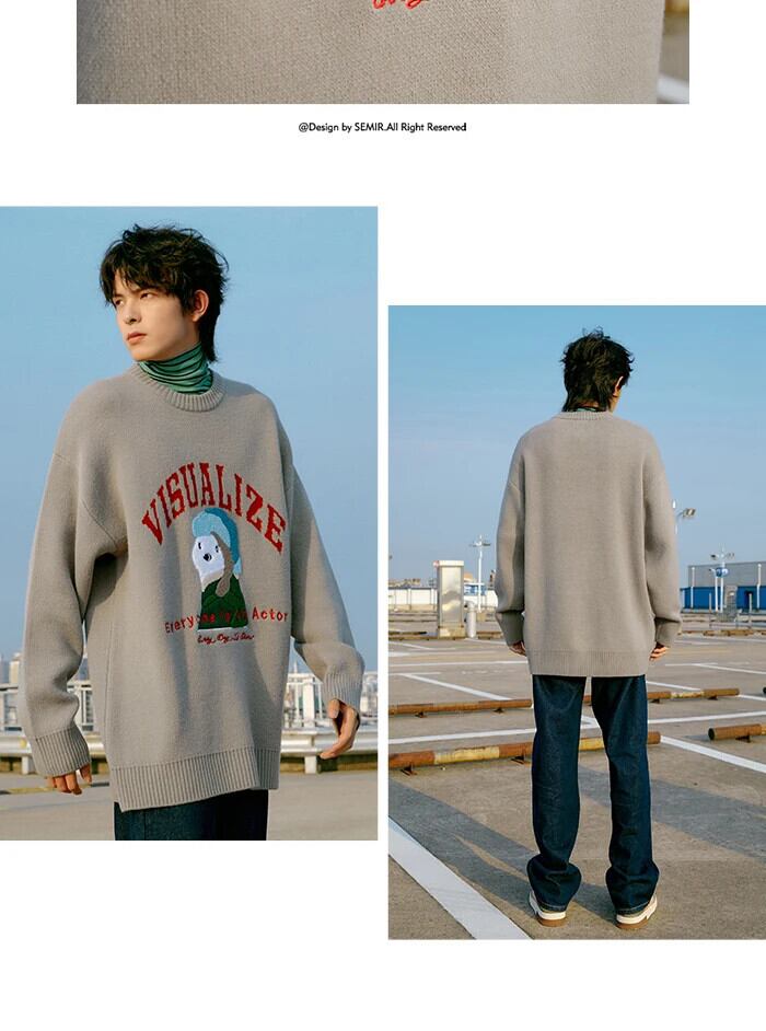 送料無料 Semir セーター男性 2023 冬スタイルニットセータールーズレター刺繍ショルダー Comtable インナーセーター レッド ウィンター 冬物 AE1212777797521189887
