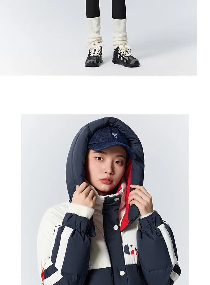 送料無料 Semir ダウンジャケット女性ロングカラーブロック文字冬フード付きルーズ暖かい厚いコート ウィンター 冬物 AE1212777755931851610