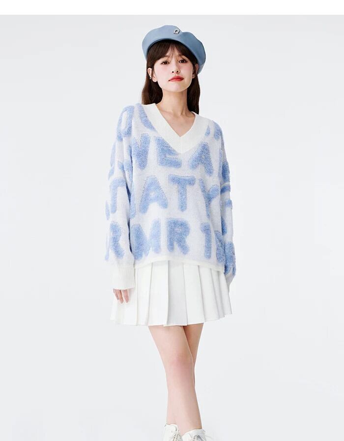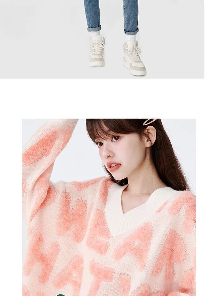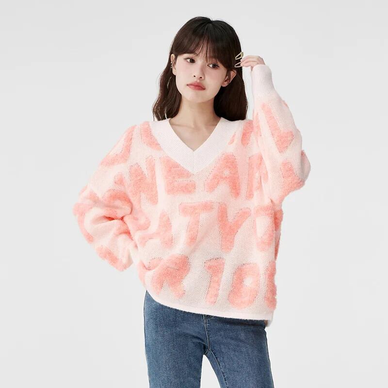 送料無料 Semir 女性セーター秋レタージャカード V ネック気質オーバーサイズショルダー人格ニッチセーター女性 オータム 秋物 Vネック AE1212777739994096307