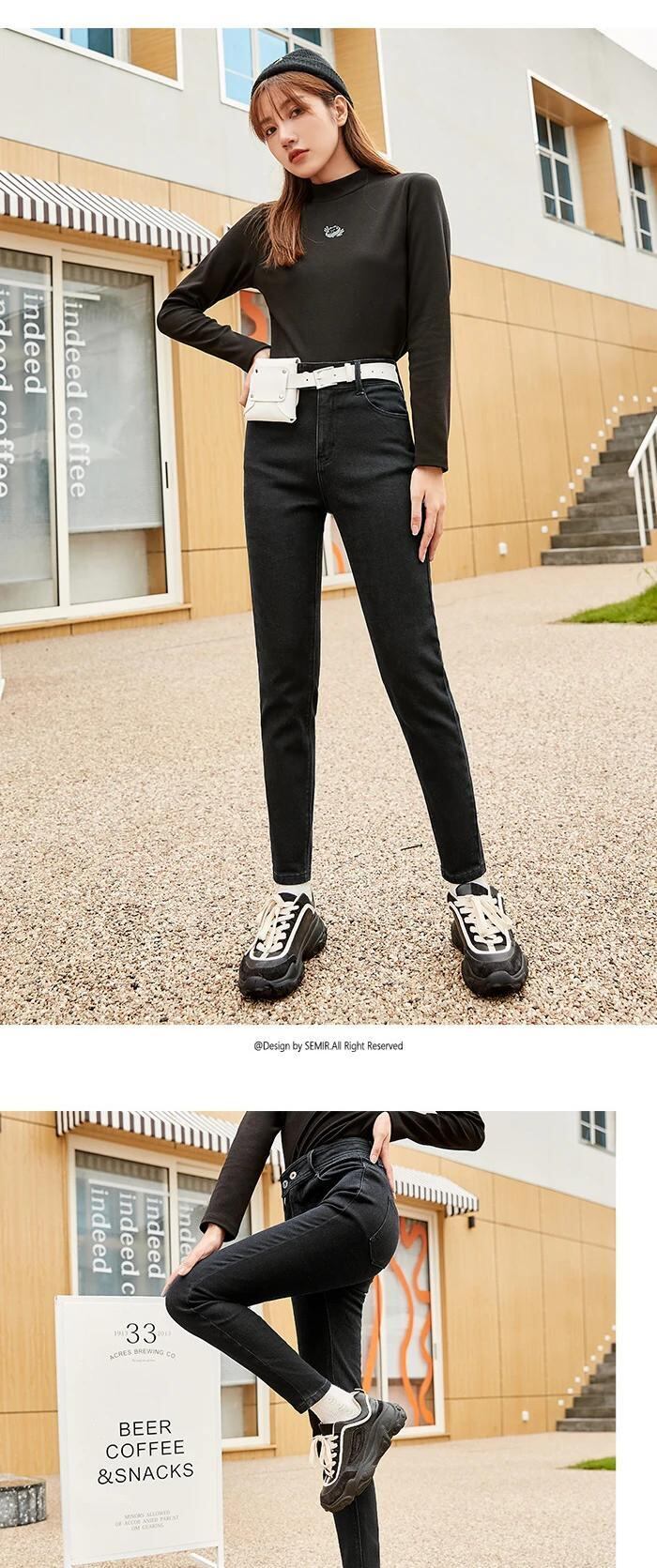 送料無料 Semir ジーンズ女性ウエスト 2023 冬 Comtable ソフトブラックスリムフィットジーンズ ウィンター 冬物 AE121277773684017813