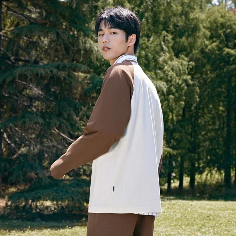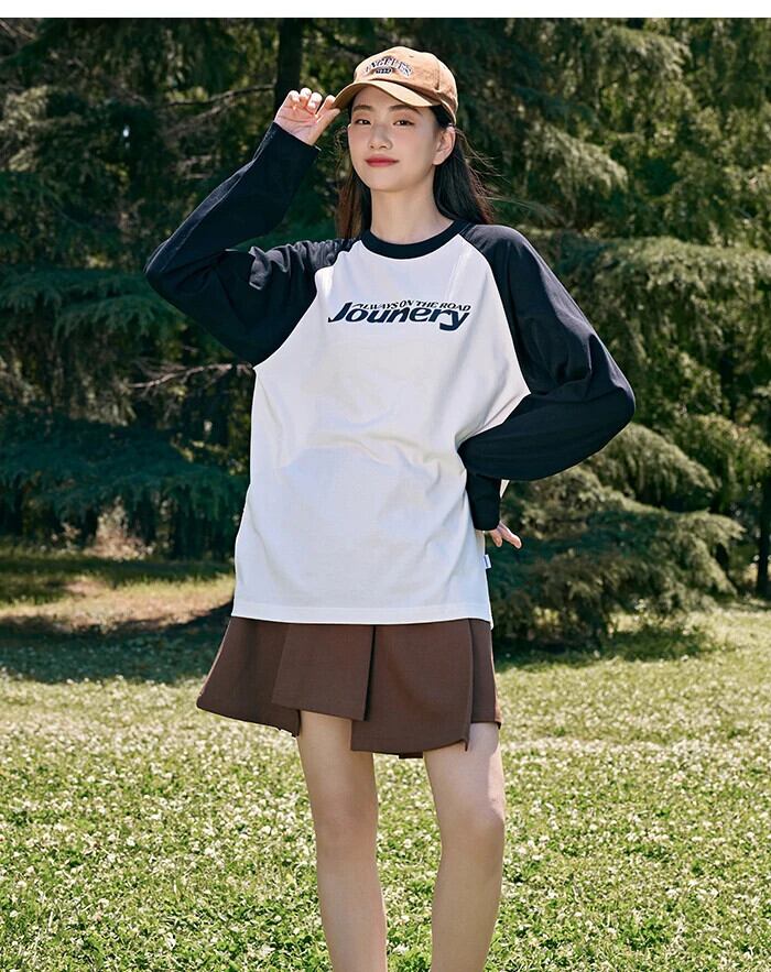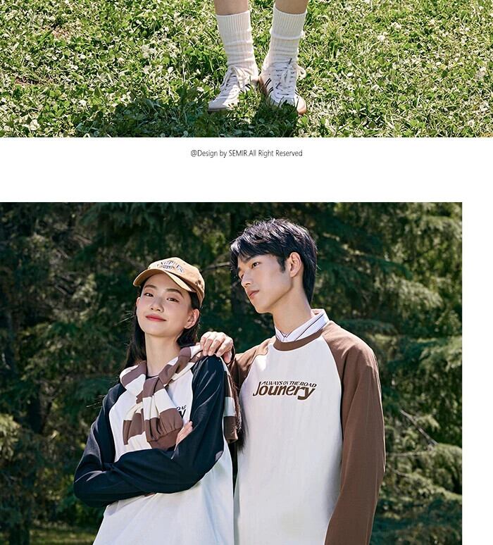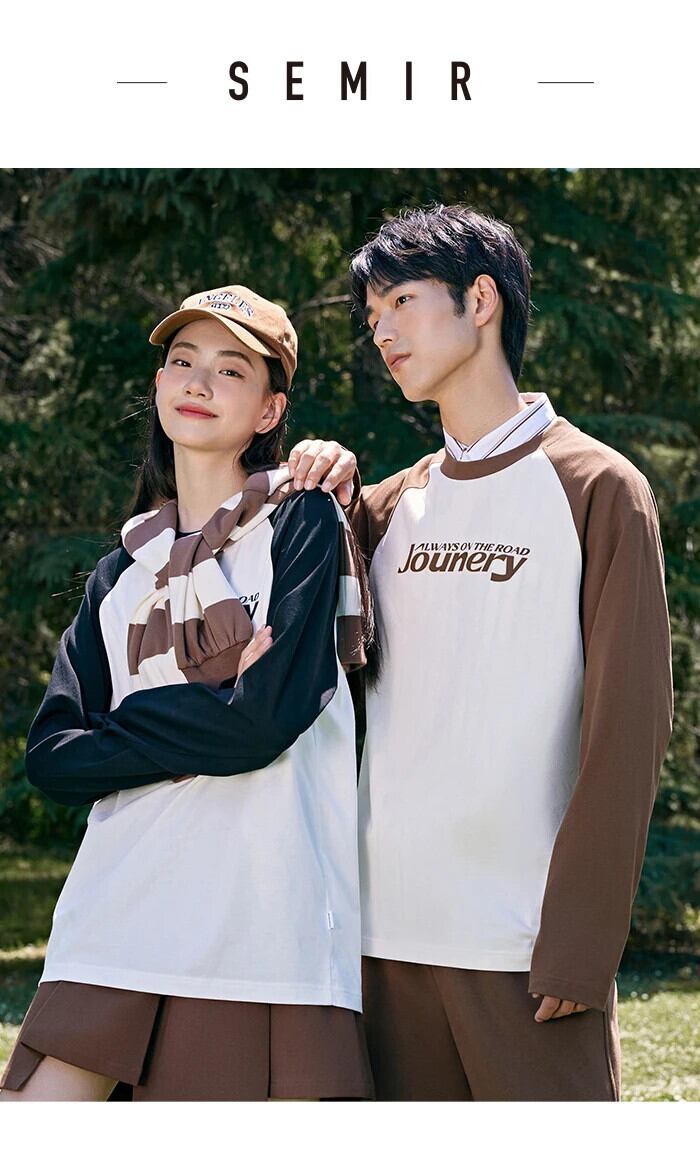 送料無料 Semir 2023 男性 Tシャツ長袖 Tシャツ秋ルーズアメリカンレトロラグランスリーブプリントトップストリートトップ男性 ロング オータム 秋物 AE1212777758165464750