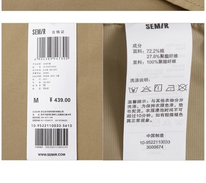 送料無料 Semir 女性ウインドブレーカーストレッチショートカーキルーズシンプル 2022 秋スタイル気質有能コート多用途レトロ オータム 秋物 AE1212777753874691887