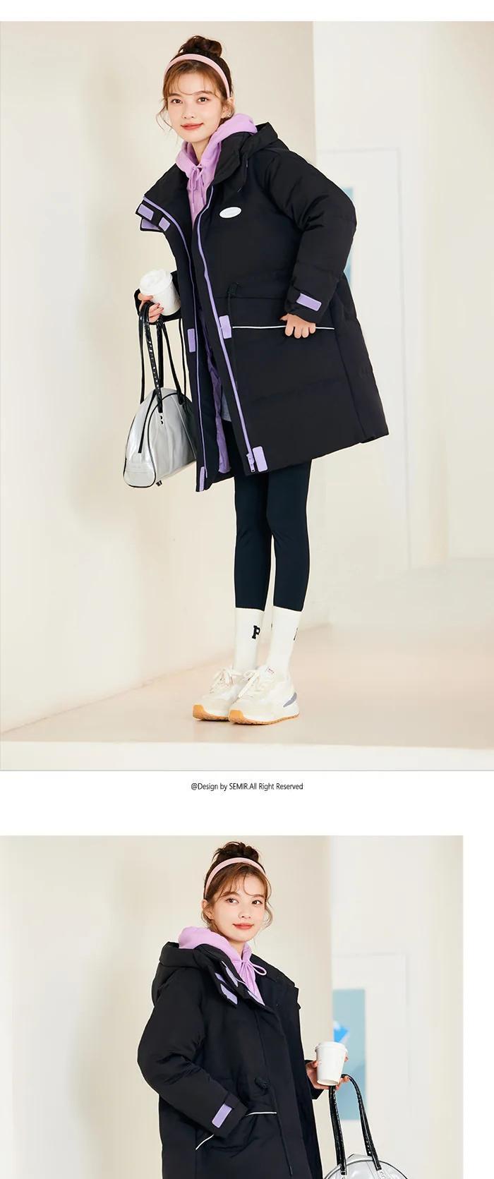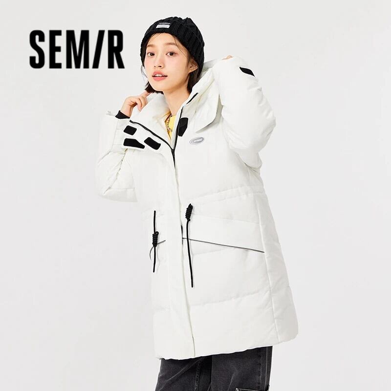 送料無料 Semir ダウンジャケット女性ロング暖かいフード付き 2023 冬 3 プルーフルーズ巾着厚いコート ウィンター 冬物 AE1212777720721182011