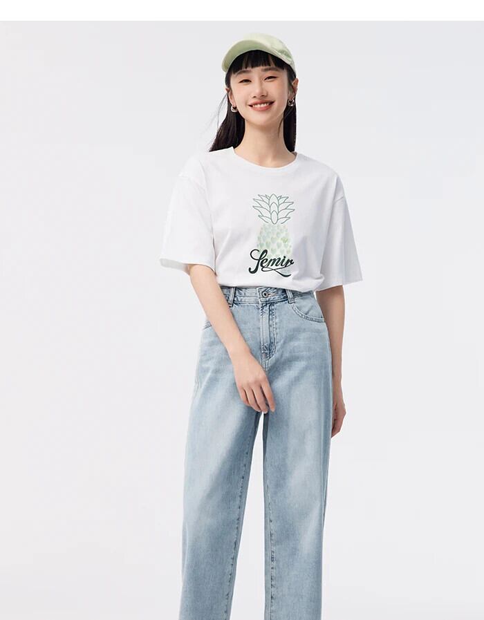 送料無料 Semir ジーンズ女性ピュアコットンワイドレッグパンツ刺繍夏スプリットパンツ怠惰なストリートスタイル レッド サマー 夏物 ワイドパンツ AE1212777758001006270