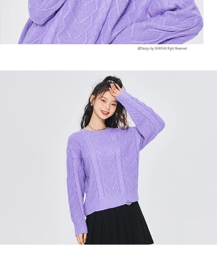 送料無料 Semir セーター女性ケーブルセータールース 2022 秋オールマッチ女性の固体ラウンドネックトップ オータム 秋物 Oネック ソリッドカラー AE121277774913611337
