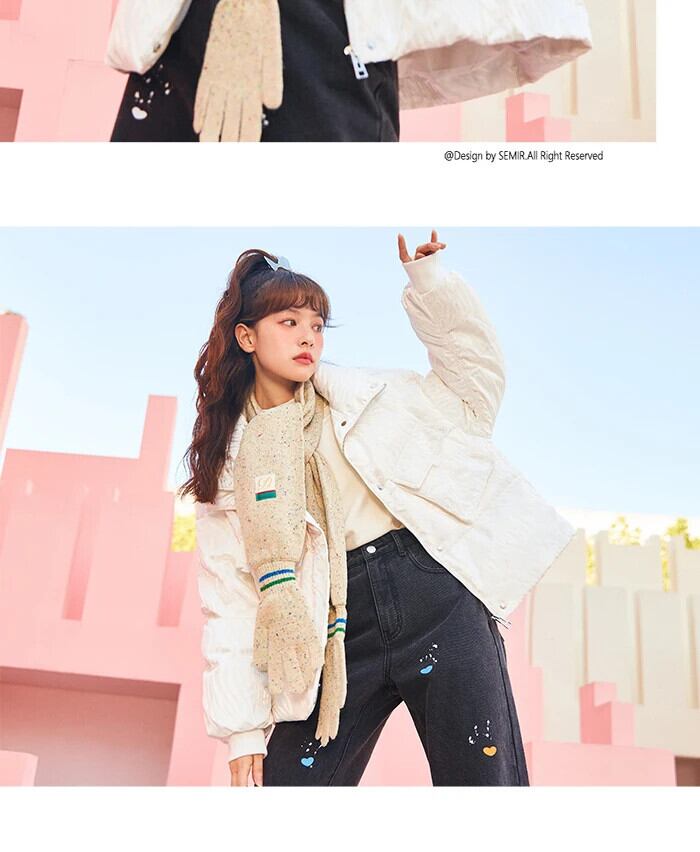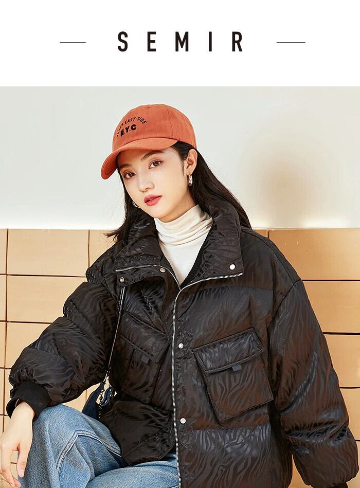 送料無料 Semir ダウンジャケット女性ゼブラ柄スタンドカラー 2023 冬ルーズオールマッチパンジャケット ウィンター 冬物 AE1212777710729332381