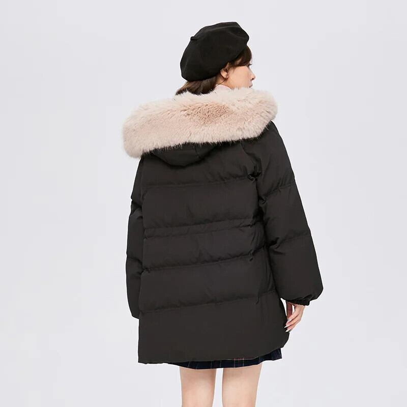送料無料 Semir ダウンジャケット女性ミッドレングスの毛皮の襟フード付き 2023 冬巾着ルーズ質感厚いトップ ウィンター 冬物 AE1212777748348019944