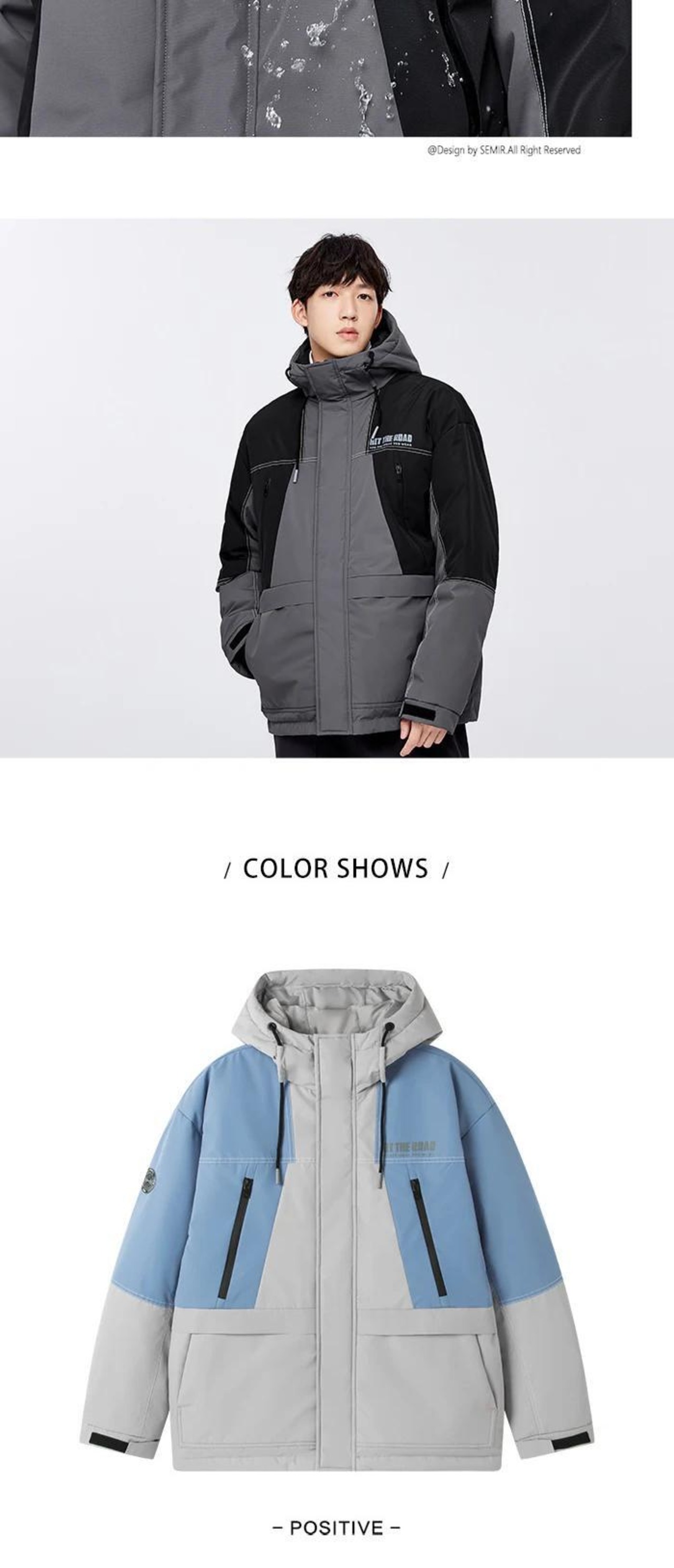 送料無料 Semir ダウンジャケット男性 2022 冬コートルーズコントラストカラーステッチ 3 プルーフレタープリントフード付きトップ ウィンター 冬物 AE1212777712406538900
