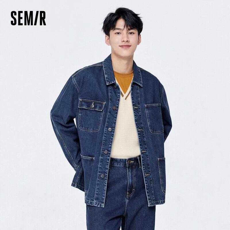 送料無料 Semir 2023 メンズジャケットトレンディなソリッドカラーのキャンパストップツーリングデニムジャケット秋のジャケットの男性 オータム 秋物 AE1212777771289882656