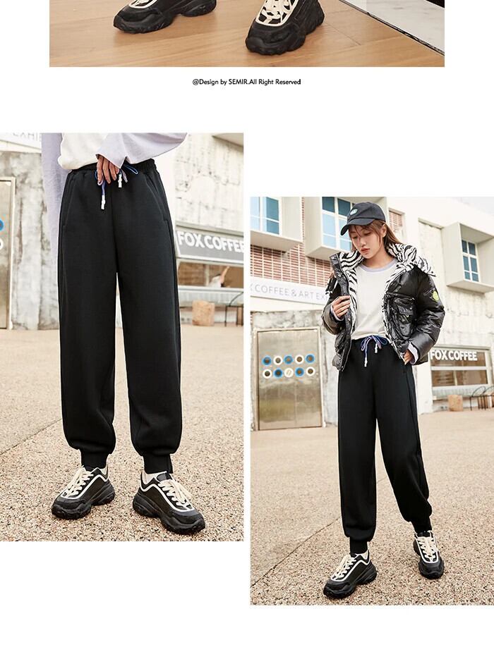 送料無料 Semir 2023 女性パンツ黒トレンディプラスベルベットルーズレッグスポーツ秋冬黒パンツ女性 ブラック オータム 秋物 ウィンター 冬物 AE12127777274508777