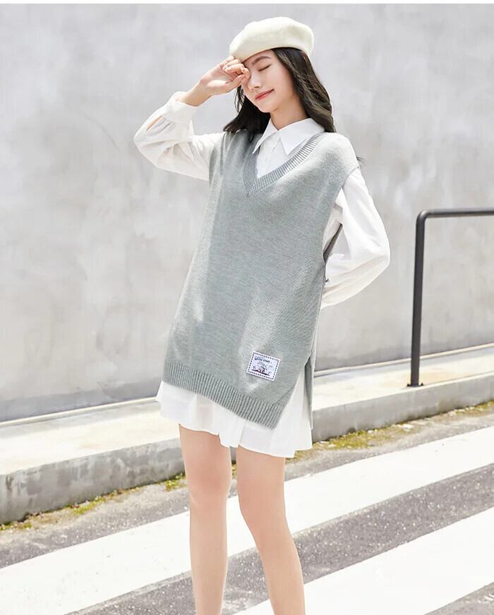 送料無料 Semir ベスト女性コート春と秋 2023 スタイル V ネックニットウェアインガールズ着用ルーズチョッキ スプリング 春物 オータム 秋物 Vネック AE1212777778553982195