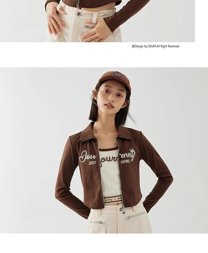 送料無料 Semir 2023 女性 Tシャツ長袖秋ショートスタイルタイトな薄文字ニットカーディガンレトロスタイル Tシャツ女性 ロング オータム 秋物 AE1212777754189935438