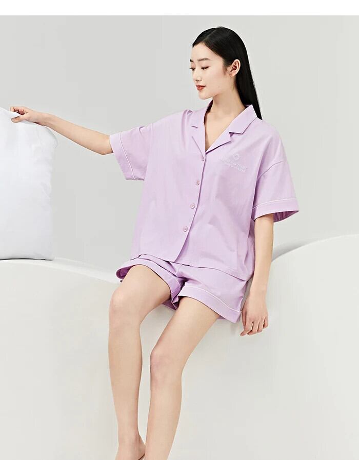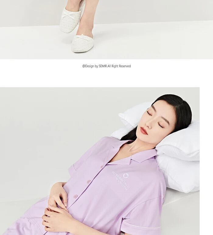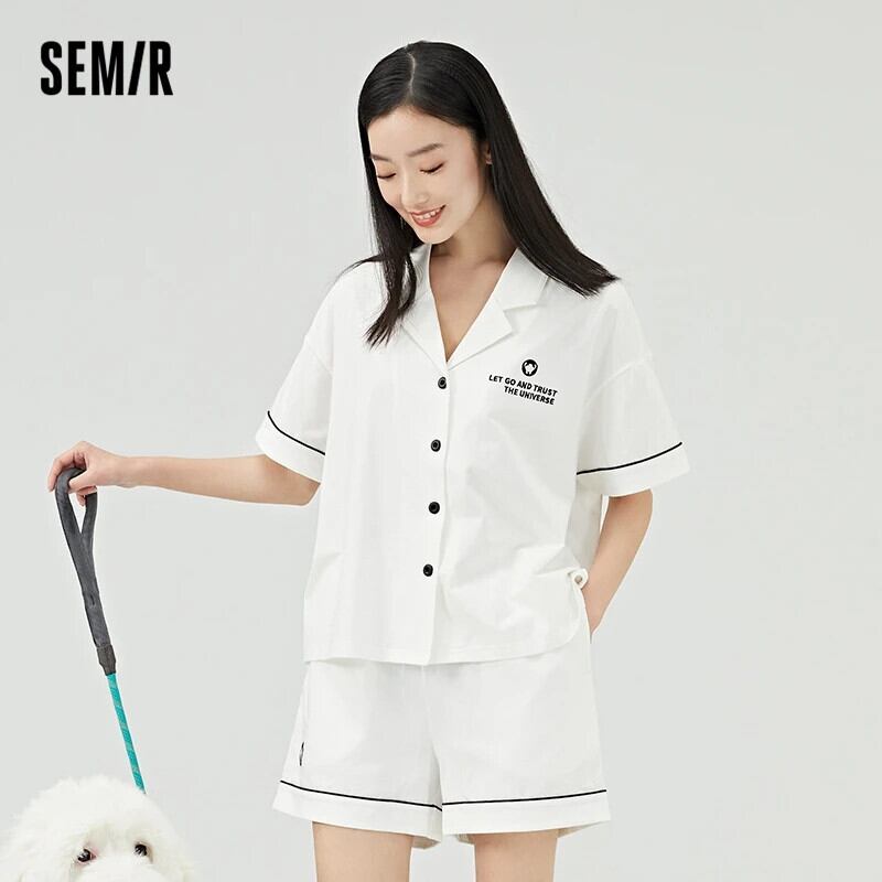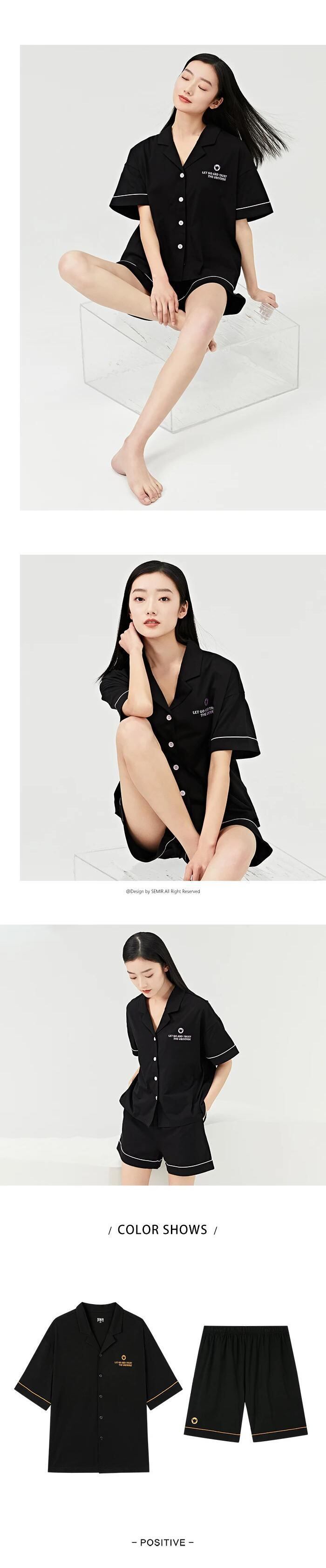 送料無料 Semir パジャマ女性レタープリントクール半袖ショーツ 2 点セット男性上着カップルホームスーツ ショート ハーフスリーブ ブルマー AE1212777785477614554