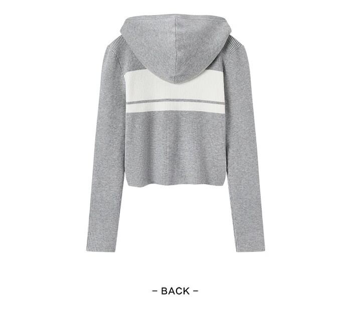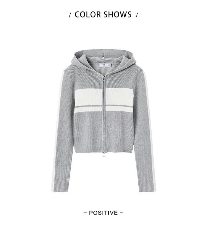 送料無料 Semir 2023 女性ニットカーディガン秋ショートスタイルコントラストカラーフード付きスリムトップ小さなフレグランススタイルトップ女性 オータム 秋物 AE1212777720813648106