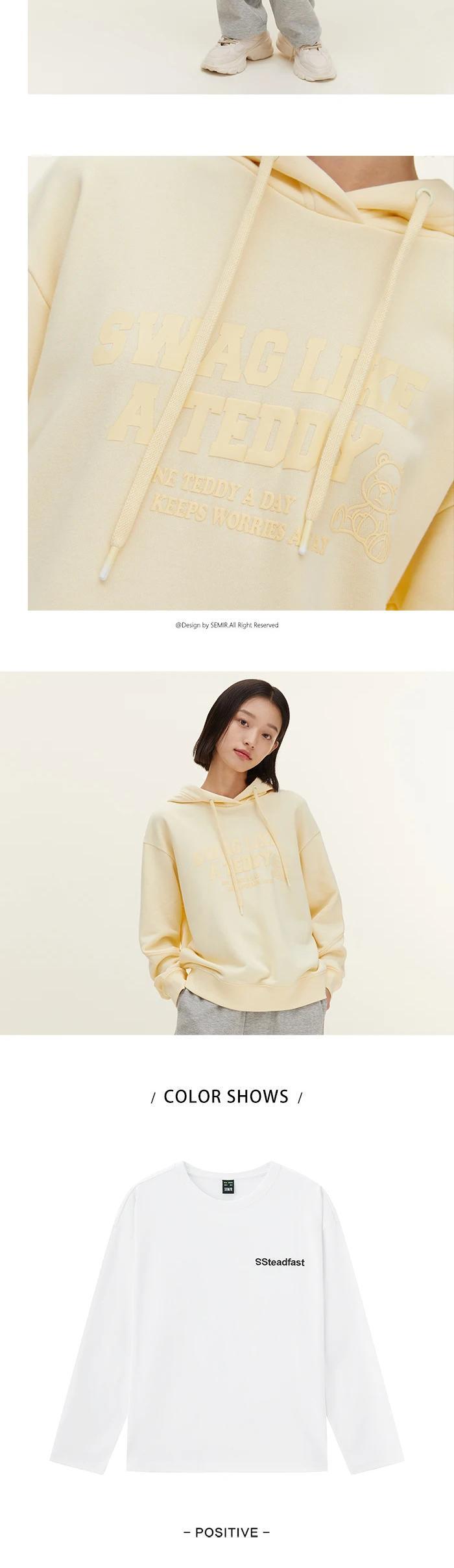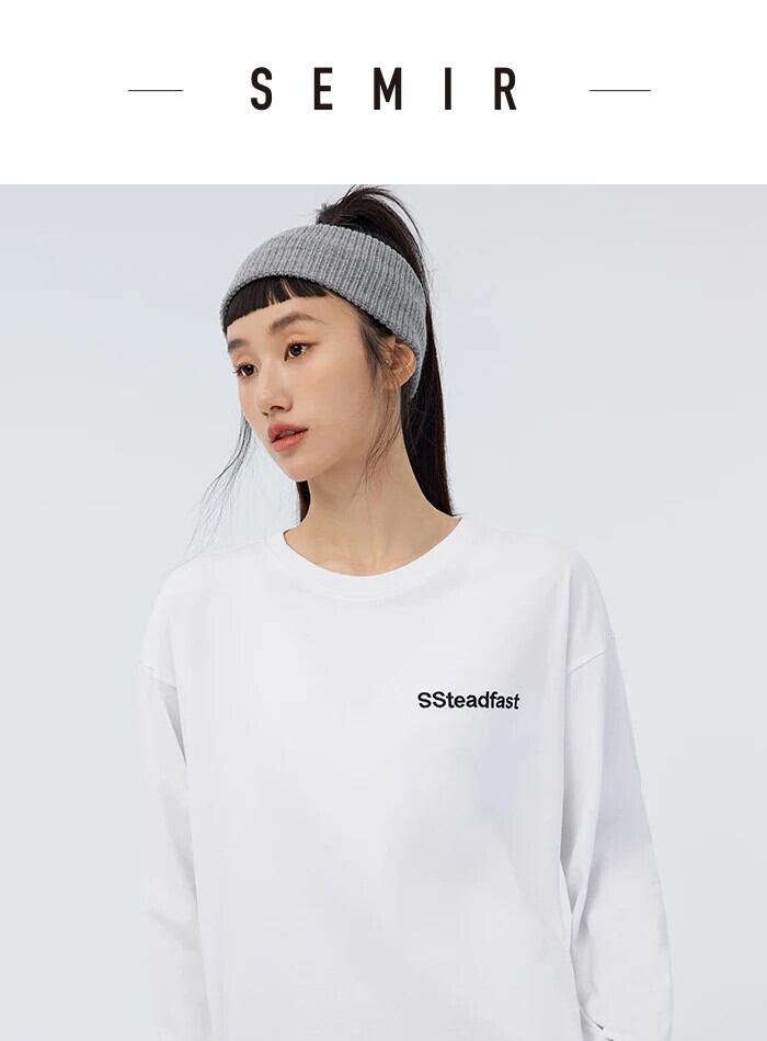 送料無料 Semir 長袖 Tシャツ女性レター刺繍 O ネックトップ 2023 春シンプルなルーズボトム Tシャツ ロング レッド スプリング 春物 Oネック AE1212777713010583391
