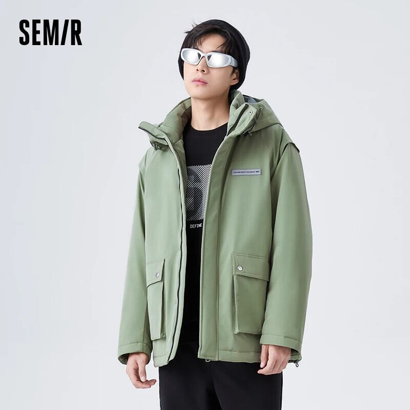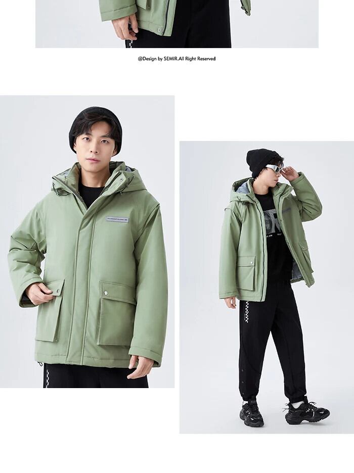 送料無料 Semir コットンコートメンズ冬コントラストカラーステッチ 3 プルーフ技術ミッドレングス暖かい Comtable 屋外ルーズ ウィンター 冬物 AE1212777759137122312