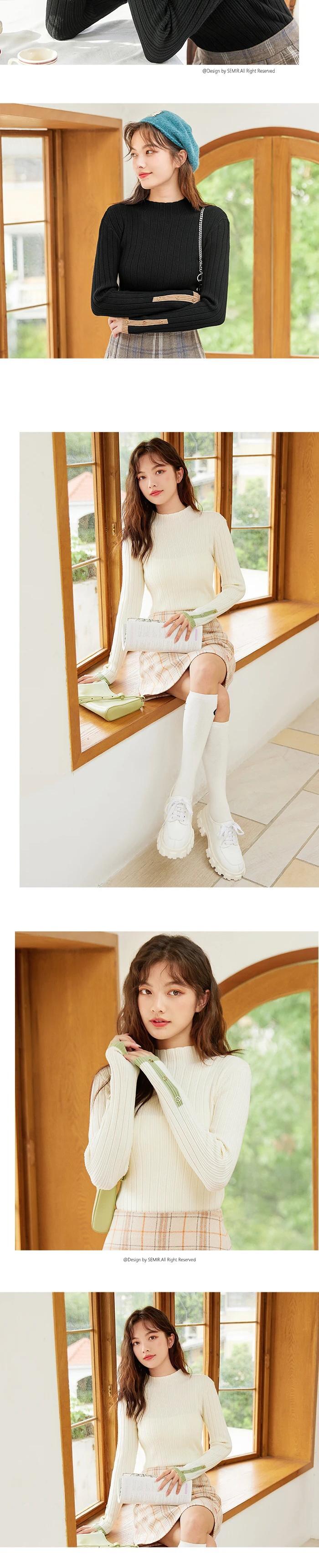 送料無料 SEMIR ニットセーター女性自己修養コントラストカラー通勤冬 2021 テクスチャトップス優しい風 ウィンター 冬物 AE1212777733338094390