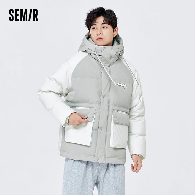 送料無料 Semir ダウンジャケット男性冬ルーズコントラストカラースプライシング作業服巾着フード付きジャケット ウィンター 冬物 AE1212777719837992243