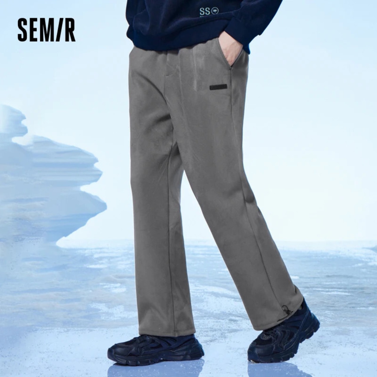 送料無料 Semir パンツ男性 2023 冬シンプルプラスベルベット肥厚暖かいスポーツ通勤ルーズストレートズボン ウィンター 冬物 AE1212777718443169324