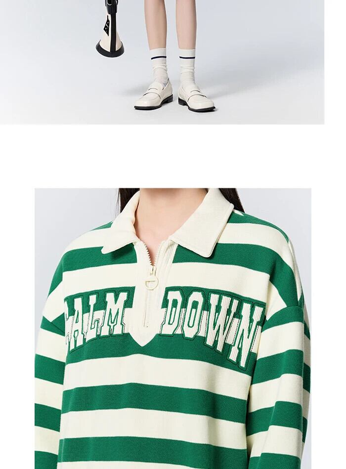 送料無料 Semir セーター女性ワッフルテクスチャストライプシャツオーバーサイズ冬ポロ襟文字刺繍レトロトレーナー レッド ウィンター 冬物 AE1212777747531197129