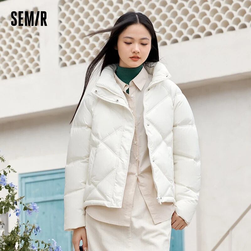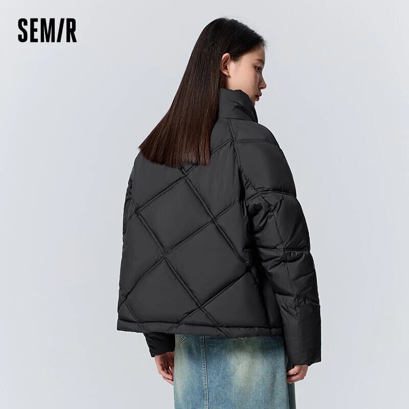 送料無料 Semir コットンコート女性ルーズスタンドカラーシンプル 2023 冬防水菱形厚手のコート ウィンター 冬物 AE1212777789271374481