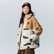送料無料 Semir コート女性ミッドレングスオーバーサイズ模造ラムウールレタリング甘いクール冬スタンドアップカラーカラーマッチングコート 大人ガーリー スウィート キュート カジュアル ウィンター 冬物 AE1212777767133339654