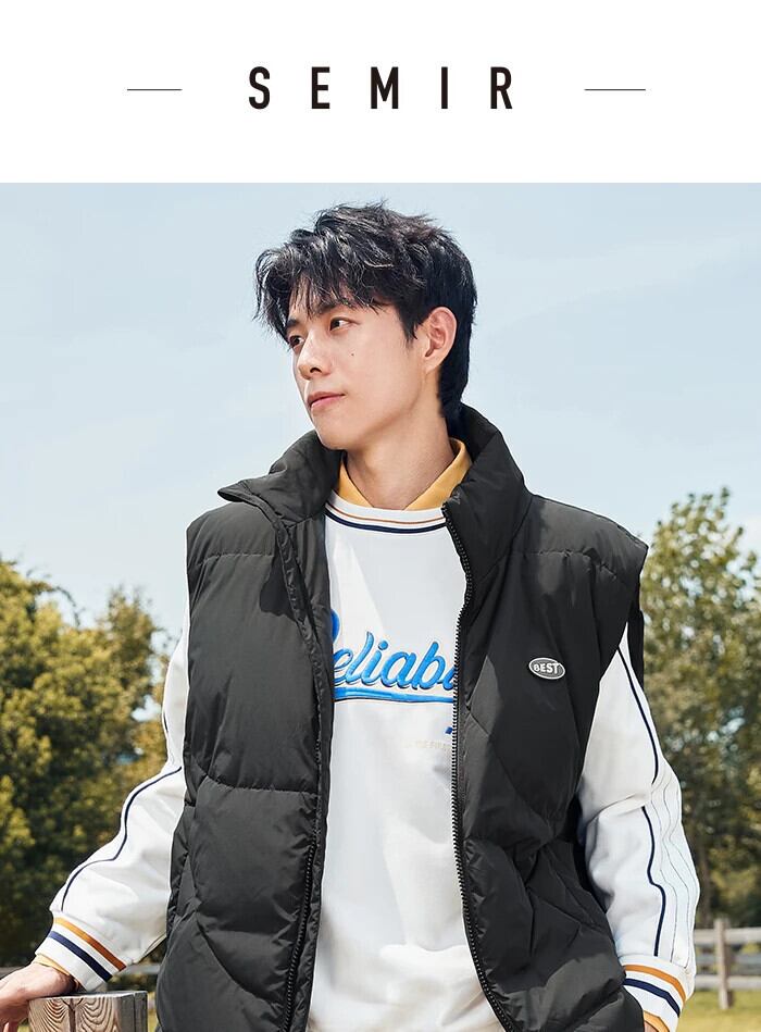 送料無料 Semir ベスト男性 2022 冬スタイル暖かいスタンドカラーダウンベストトレンド無地作業服ノースリーブトップ ウィンター 冬物 ソリッドカラー AE1212777765265556876