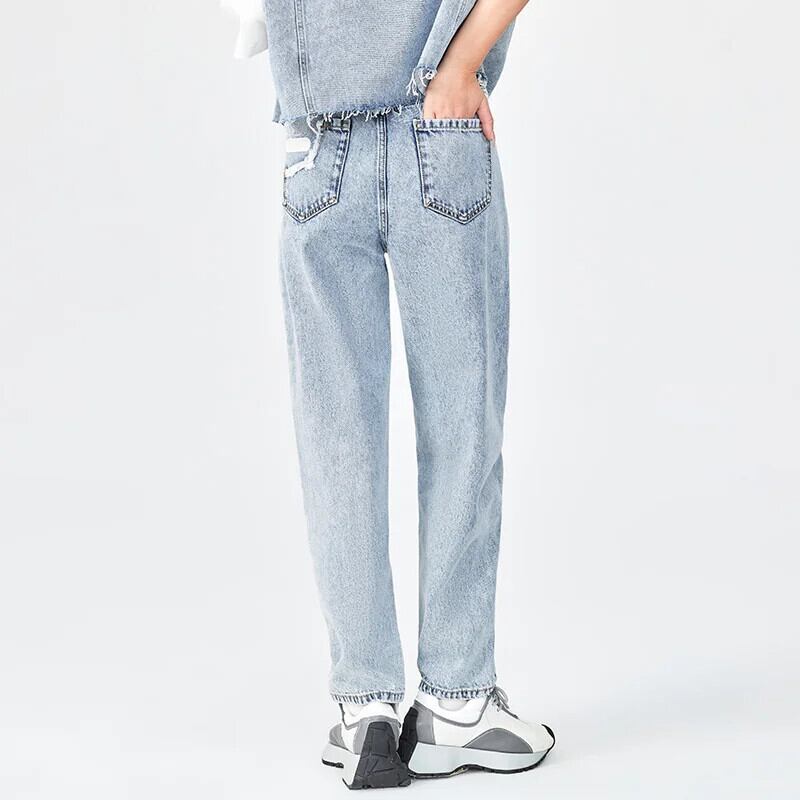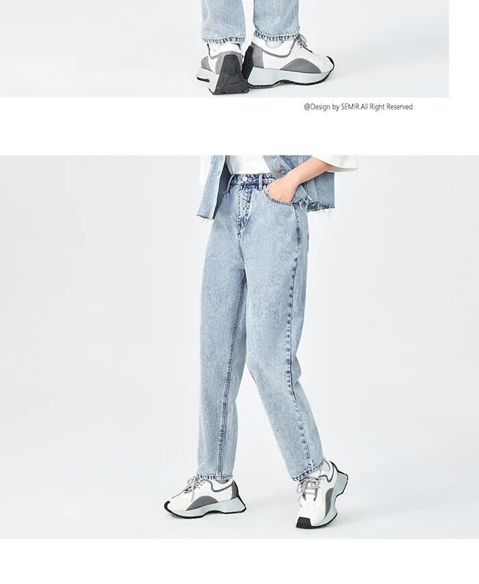 送料無料 Semir ジーンズ女性テーパードパンツ人格春 2023 綿ダメージ加工生エッジクロップドパンツ香港スタイル レッド コットン スプリング 春物 AE1212777726742918825