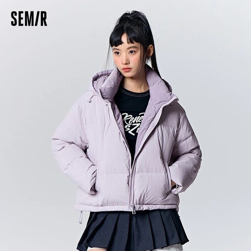 送料無料 Semir ダウンジャケット女性カラーブロックフード付きレトロ 2023 冬シンプルなオーバーサイズ軽量ジャケット ウィンター 冬物 AE1212777788506445771