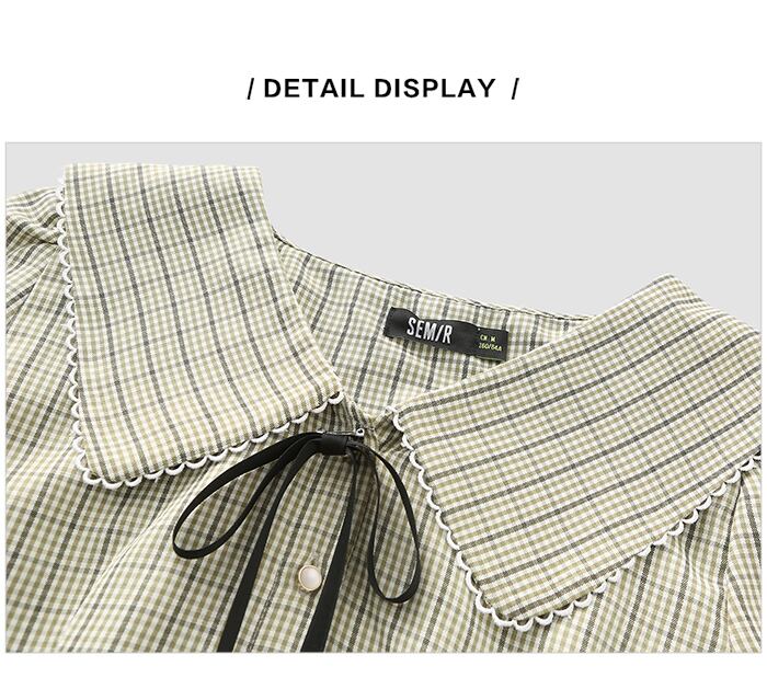 送料無料 Semir 長袖シャツ女性ショートラーペルレトロ 2023 春チェック柄シャツ ロング スプリング 春物 AE12127777175360256